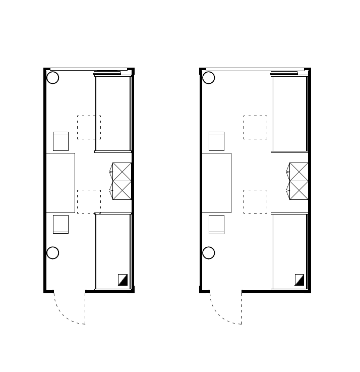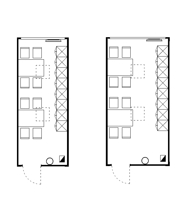 Das flexible ELA Raumsystem ermöglicht verschiedene Raumaufteilungen für die Unterbringung einzelner Personen oder auch größerer Personengruppen. Bei der Anzahl der Personen pro Container ist die Arbeitsstättenverordnung zu beachten.