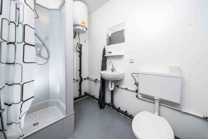 Unsere drei Meter breiten Wohnmodule bieten großzügigen Raum zum Schlafen, Kochen und Wohnen – inklusive eigenem Sanitärbereich für maximale Privatsphäre.